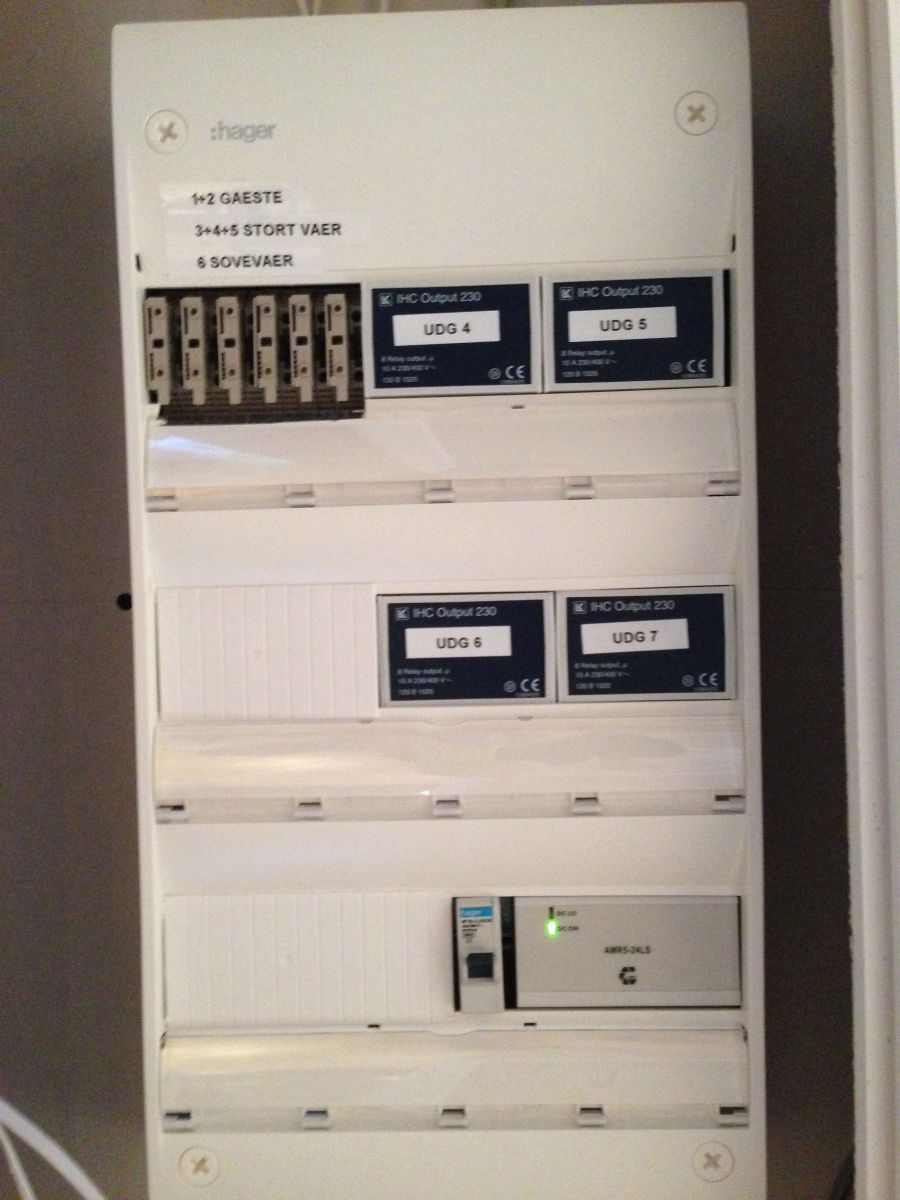 Relæer efter behov - her styres 7 gardiner individuelt